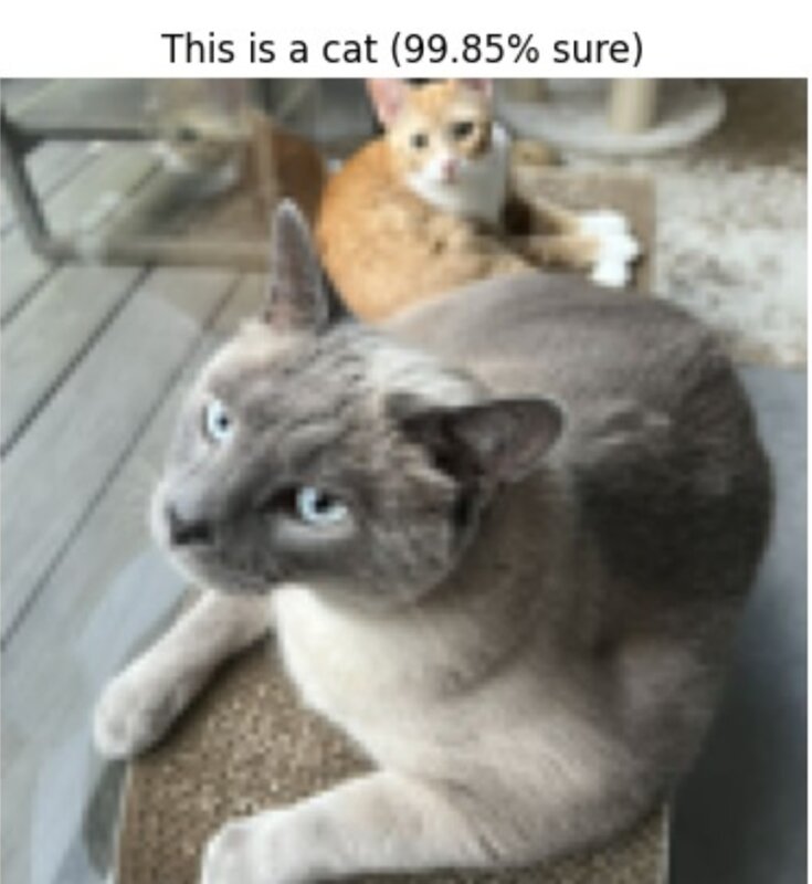 I tested the model on personal pet photos and internet images. When confident, it was very confident (100% on clear dog/cat photos). On ambiguous or out-of-distribution images like cartoon cats or meme images, the confidence dropped appropriately, showing the model had learned meaningful features rather than just memorizing the training set.